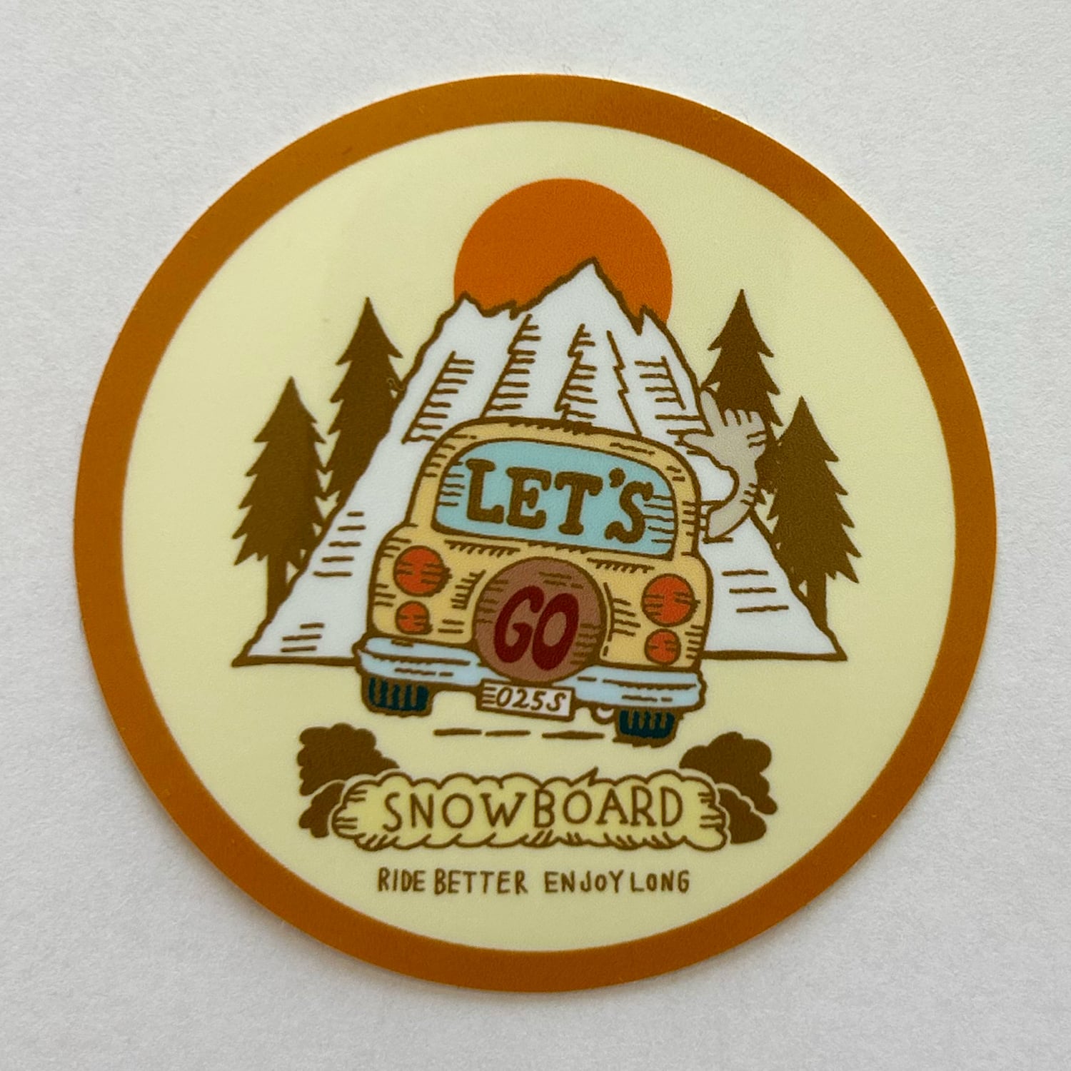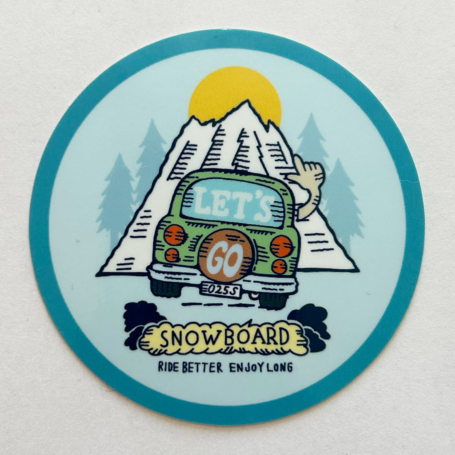 レッツゴースノーボード!を象徴する「車に乗って雪山に向かう」イラストを、とってもポップに仕上げてもらいました!
